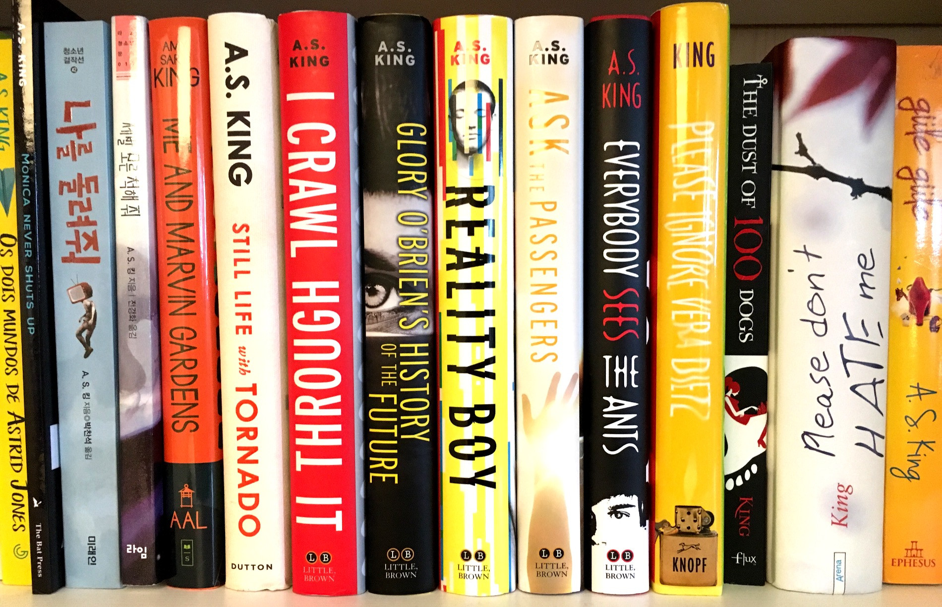 A.S. King is the author of the highly-acclaimed I CRAWL THROUGH IT, Walden Award winner GLORY O'BRIEN'S HISTORY OF THE FUTURE, REALITY BOY, 2013 LA Times Book Prize winner ASK THE PASSENGERS, 2012 ALA Top Ten Book for Young Adults EVERYBODY SEES THE ANTS, and 2011 Michael L. Printz Honor Book PLEASE IGNORE VERA DIETZ and THE DUST OF 100 DOGS as well as a collection of award-winning short stories for adults, MONICA NEVER SHUTS UP.